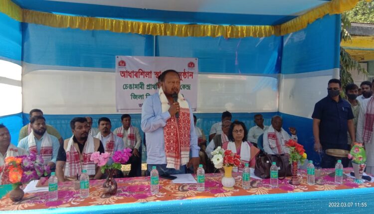 চতিয়াৰ চেঙামাৰিত প্ৰাথমিক স্বাস্থ্য কেন্দ্ৰৰ আধাৰশিলা স্থাপন কৰিলে চতিয়া সমষ্টিৰ বিধায়ক পদ্ম হাজৰিকাই
