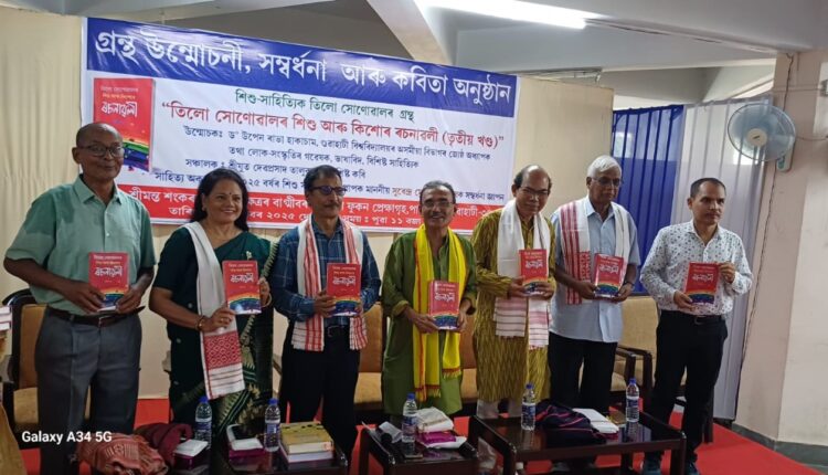 আজি গুৱাহাটীৰ পাঞ্জাবাৰী শ্ৰীমন্ত শংকৰদেৱ কলক্ষেত্ৰৰ বাগ্মীবৰ নীলমণি ফুকন প্ৰেক্ষাগৃহত গ্ৰন্থ উন্মোচনী, কবিতা পাঠ আৰু সম্বৰ্ধনা অনুষ্ঠান অনুষ্ঠিত হৈ যায়৷ সভাত জনতাৰ শিল্পী জুবিন গাৰ্গক শ্ৰদ্ধাঞ্জলি জ্ঞাপন কৰে অসম সাহিত্য সভা কাৰ্যনিৰ্বাহক সদস্য অতুল তামুলীয়ে আৰু ড॰ ভূপেন হাজৰিকাৰ প্ৰতিছবিত মাল্যাৰ্পণ কৰে সাহিত্যৰথী সাহিত্য সভা সভাপতি মফিজুদ্দিন আহমদে৷ কবি, লেখক ভবেনজ্যোতি বৰাৰ সম্পাদনাত শিশু-সাহিত্যিক তিলো সোণোৱালৰ “তিলো সোণোৱালৰ শিশু আৰু কিশোৰৰ ৰচনাৱলী” ৩য় খণ্ড উন্মোচন কৰে গুৱাহাটী বিশ্ববিদ্যালয়ৰ অসমীয়া বিভাগৰ জ্যেষ্ঠ অধ্যাপক তথা লোক-সংস্কৃতিৰ গৱেষক, ভাষাবিদ ড॰ উপেন ৰাভা হাকাচামে৷ মহেশ্বৰ বৰাৰ বৰগীত পৰিৱেশনেৰে আৰম্ভ কৰা সভাখনি সঞ্চালনা কৰে বিশিষ্ট কবি দেৱপ্ৰসাদ তালুকদাৰে৷ সভাত ২০২৫ বৰ্ষ সাহিত্য অকাডেমীৰ শিশু-সাহিত্য বঁটা প্ৰাপক মানীয় সুৰেন্দ্ৰ মোহন দাসক সম্বৰ্ধনা জনোৱা হয়৷ সভাত বিশিষ্ট অতিথি হিচাপে উপস্থিত থাকে শৰাইঘাট মহাবিদ্যায়ৰ অৱসৰপ্ৰাপ্ত অধ্যাপিকা প্ৰতিমা মহন্ত৷ গ্ৰন্থ উন্মোচনীৰ লগতে এখনি কবি সন্মিলন অনুষ্ঠিত হৈ যায়৷ কবি সন্মিলনীখনি আৰম্ভ হয় লোকনিৰ্মাণ বিভাগৰ অৱসৰপ্ৰাপ্ত মুখ্য অভিযন্তা ফাইজুৰ ৰহমান আৰু তেওঁৰ সংগীবৃন্দই জিকিৰ পৰিৱেশনে৷ ভাস্বতী ভূঞাই আঁত ধৰা উক্ত কবি সন্মিলনখনিত কবি ক্ৰমে খগেন্দ্ৰ নাথ তালুকদাৰ, দ্বীপৰাজ, ৰঞ্জিত পাটগিৰি, জোনালী মজুমদাৰ, ভিক্টৰ ৰাজকুমাৰ, মনালিছা শৰ্মা, প্ৰতুল শৰ্মা, অঞ্জনা দাস, দিগন্তু কুমাৰ নাথ, ছৈয়দা আঞ্জুম আৰা হুচেইন, মৃদু গোস্বামী, জ্যোতিৰ্ময় শৰ্মা, পৰশমণি ভৰালী, ৰাজশ্ৰী ৰাজলক্ষ্মী, স্ব›Ÿালী নাথ, দীপ্তি বৰা, মেঘালী বৰা, আজিদা বেগম, মাধুৰীভূঞা কলিতা, ৰূপালী বৰা ৰাজখোৱা, দীপিকা কলিতা, মামনি ফুকন ভূঞা, অৰুন্ধতী বৰnৱা শইকীয়া আৰু লীলা প্ৰভা দাস ডাঃ নিৰঞ্জন দাস, গজেন দাস, অতুল তামুলী, কল্পনা দেৱীয়ে স্বৰচিত কবিতা পাঠ কৰে৷