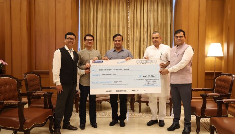 অসম খনিজ উন্নয়ন নিগম পৰিসীমিতৰ তৰফৰ পৰা মুখ্যমন্ত্ৰী সাহায্য পুঁজিলৈ ১ কোটি টকাৰ চেক প্ৰদান