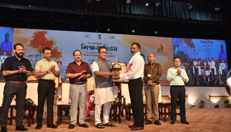 বিশ্ববিখ্যাত দাৰ্শনিক, শিক্ষাবিদ ড০ সৰ্বপল্লী ৰাধাকৃষ্ণণ দেৱৰ সোঁৱৰণত সমগ্ৰ দেশতে আজিৰ দিনটো শিক্ষক দিৱস হিচাপে পালন কৰি অহা হৈছে। এই পৰিপ্ৰেক্ষিতত অসম চৰকাৰৰ শিক্ষা বিভাগৰ উদ্যোগত কলাক্ষেত্ৰৰ শ্ৰীমন্ত শঙ্কৰদেৱ আন্তৰ্জাতিক প্ৰেক্ষাগৃহত অনুষ্ঠিত ৬২ সংখ্যক শিক্ষক দিৱসৰ কেন্দ্ৰীয় অনুষ্ঠানত মূখ্য অতিথি ৰূপে অংশ গ্ৰহণ কৰে শিক্ষামন্ত্ৰী ডাঃ ৰণোজ পেগুই। উক্ত অনুষ্ঠানত ছাত্ৰ-ছাত্ৰী আৰু আমাৰ শৈক্ষিক ক্ষেত্ৰখনৰ উত্তৰণৰ ক্ষেত্ৰত অৱদান আগবঢ়োৱা প্ৰাক-প্ৰাথমিক, প্ৰাথমিক আৰু মাধ্যমিক স্তৰৰ মুঠ ৩৬ গৰাকী মনোনিত শিক্ষকক কৃতি শিক্ষাগুৰুৰ ৰাজ্যিক বঁটা প্ৰদান কৰা হয়। ইয়াৰ উপৰিও যিহেতু নতুন শিক্ষা নীতিয়ে উচ্চ শিক্ষা আৰু বিদ্যালয় শিক্ষাৰ মাজতে এক সামঞ্জস্য ৰক্ষাৰ কথা উল্লেখ কৰিছে, এই পৰিপ্ৰেক্ষিতত পোণপ্ৰথম বাৰৰ বাবে ৯ গৰাকীকৈ মহাবিদ্যালয়ৰ প্ৰৱক্তাক তেওঁলোকৰ গৱেষণাৰ পেটেণ্ট স্বিকৃতি লাভৰ বাবে এই অনুষ্ঠানত বঁটা আৰু মানপত্ৰৰে তেওঁলোকক সম্বৰ্ধনা জনোৱা হয়। ইয়াৰ উপৰিও উচ্চ শিক্ষাৰ ক্ষেত্ৰত ৰাজ্যখনৰ ৯ খনকৈ মহাবিদ্যালয়ে NAAC ৰ মূল্যায়নত A+ গ্ৰেড লাভ কৰা শিক্ষানুষ্ঠান ক্ৰমে বাহনা মহাবিদ্যালয় (যোৰহাট), ভোলানাথ মহাবিদ্যালয় (ধুবুৰী), ডিগবৈ মহাবিদ্যালয় (তিনিচুকীয়া), ফৰকাটিং মহাবিদ্যালয় (গোলাঘাট), জাগিৰোড মহাবিদ্যালয় (মৰিগাওঁ), নন্দনাথ শইকীয়া মহাবিদ্যালয় (যোৰহাট), সোণাপুৰ মহাবিদ্যালয় (কামৰূপ মহানগৰ), চন্দ্ৰকমল বেজবৰুৱা মহাবিদ্যালয় (যোৰহাট) আৰু মায়ং আঞ্চলিক মহাবিদ্যালয় (মৰিগাঁও)ৰ অধ্যক্ষ সকলক সম্বৰ্ধনা জ্ঞাপন কৰা হয়।