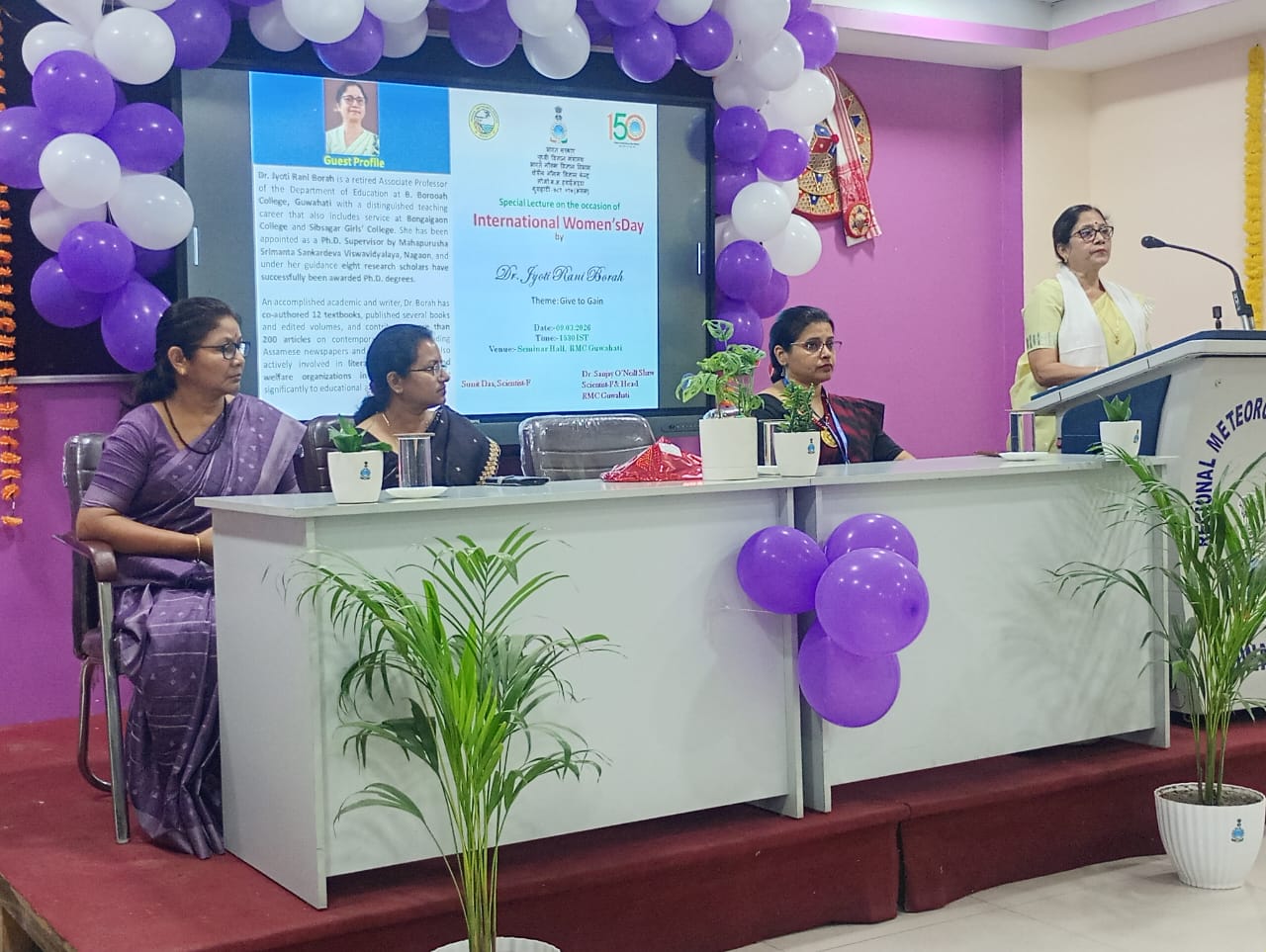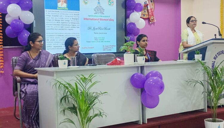 গুৱাহাটীৰ পশ্চিম প্ৰান্তৰ বৰঝাৰস্থিত আঞ্চলিক বতৰ বিজ্ঞান কেন্দ্ৰ, গুৱাহাটীৰ উদ্যোগত ৯ মাৰ্চত আন্তৰ্জাতিক নাৰী দিৱস পালন কৰা হয় । বিশেষকৈ “Give to Gain” বাণী বিষয়ত গুৰুত্ব আৰোপ কৰি আয়োজিত আন্তৰ্জাতিক নাৰী দিৱসৰ কাৰ্যসূচীৰ আৰম্ভণিতে গুৱাহাটীৰ পামহীস্থিত পৰিজাত একাডেমীত শিক্ষাৰ্থী সকলৰ মাজত আগবেলা এক বতৰ বিজ্ঞানৰ সচেতনতা প্ৰচাৰ কাৰ্যসূচী হাতত লোৱা হয় । আঞ্চলিক বতৰ বিজ্ঞান কেন্দ্ৰ, গুৱাহাটীৰ মুৰব্বী ডঃ সঞ্জয় ও’নীল শ্বই শিক্ষাৰ্থী সকলক বতৰ বিজ্ঞানৰ যন্ত্ৰসমূহৰ প্ৰদৰ্শনী আৰু বতৰ সেৱাসমূহৰ বিষয়ে এক সংক্ষিপ্ত বাখ্যা দাঙি ধৰে। আনহাতে বিয়লি আঞ্চলিক বতৰ বিজ্ঞান কেন্দ্ৰৰ আলোচনা গৃহত এখন বিশেষ বক্তৃতানুষ্ঠানৰ আয়োজন কৰা হয়। অনুষ্ঠানত অতিথি বক্তা ৰূপে উপস্থিত থাকি গুৱাহাটীৰ বি বৰুৱা কলেজ মহাবিদ্যালয়ৰ অৱসৰপ্ৰাপ্ত সহযোগী অধ্যাপিকা ডঃ জ্যোতি ৰাণী বৰাই ‘Give to Gain’ বিষয়ত মহিলাসকলৰ উন্নয়নৰ ক্ষেত্ৰত সহযোগিতাৰ প্ৰয়োজনীয়তা” শীৰ্ষক বক্তৃতা আগবঢ়ায় । অনুষ্ঠানৰ আঁত ধৰে কনিষ্ঠ অনুবাদ বিষয়া ৰাজা শ্বই ।