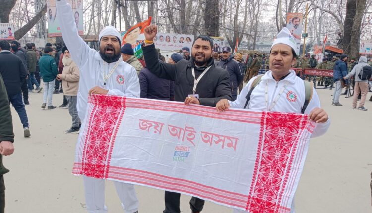 কংগ্ৰেছৰ ভাৰত জোড়ো যাত্ৰাত অসম ৰাজ্যিক কংগ্ৰেছ দলৰ তিনি যুৱক-৪০৮০ কিলোমিটাৰ যাত্ৰাৰ অন্তত শ্ৰীনগৰ লালচকত সামৰণী