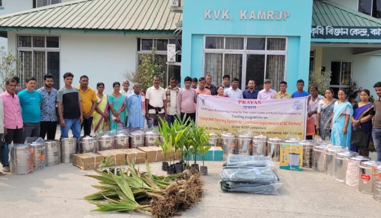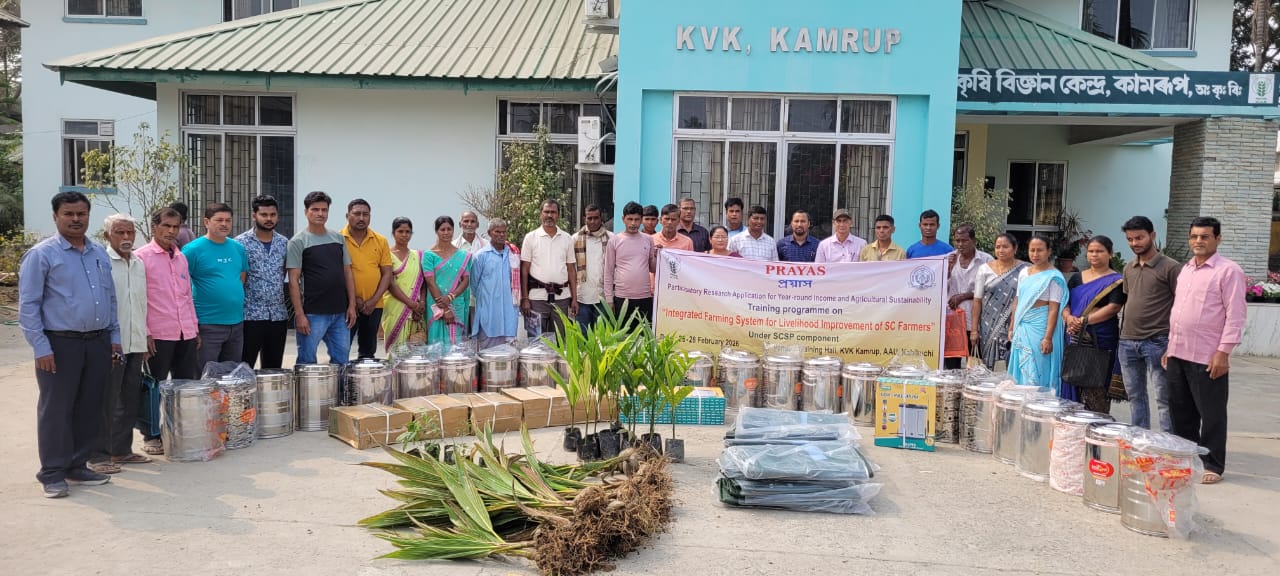 প্ৰধানমন্ত্ৰী নৰেন্দ্ৰ মোদী নেতৃত্বাধীন এন ডি এ চৰকাৰে পুৰুষ – মহিলা নিৰ্বিশেষে দেশৰ অনুসূচিত জাতিৰ লোকসকলেও যাতে অলপ মাটিত কৃষি কৰ্মৰ লগতে পশুপালন, মৎসপালনৰে আৰ্থিকভাবে স্বাৱলম্বী হব পাৰে তাৰ বাবে কৃষি মন্ত্ৰণালয়ক নিৰ্দেশনা দিছিল। সেই নিৰ্দেশনাৰ আধাৰত ভাৰতীয় কৃষি গৱেষণা পৰিষদ চমুকৈ আই চি এ আৰৰ পাটনাস্থিত পূৱ মণ্ডল গৱেষণা চৌহদৰ উদ্যোগত আৰু গুৱাহাটীৰ পশ্চিম প্ৰান্তৰ আজাৰা কাঁহিকুছিস্থিত কৃষি বিজ্ঞান কেন্দ্ৰ, কামৰূপৰ সহযোগত কেন্দ্ৰ চৌহদত ২৬ ফেব্ৰুৱাৰীৰ পৰা অনুষ্ঠিত তিনিদিনীয়া সম্বনিত কৃষি পাম প্ৰশিক্ষণ শিবিৰৰ আজি বিয়লি সামৰণি পৰে। । শিবিৰত কামৰূপ আৰু কামৰূপ মহানগৰৰ জিলাৰ বিভিন্ন প্ৰান্তৰ ৭ জনী মহিলাকে ধৰি নিৰ্বাচিত ২৫ জন কৃষকে প্রশিক্ষণ গ্ৰহণ কৰে। মূলতঃ বৈজ্ঞানিক পদ্ধতিৰে কম মাটিত ধান খেতিৰ লগতে গৰু, ছাগলী, গাহৰিকে ধৰি পশুপালন আৰু সৰু পুখুৰী বা বিশেষ পদ্ধতিৰে নিৰ্মিত কৃত্রিম পুখুৰীত মাছ পুহি কিদৰে আৰ্থিকভাবে লাভবান হব পাৰি তাৰ প্ৰশিক্ষণ দিয়া হয়। তিনিদিনীয়া শিবিৰত সমল ব্যক্তি তথা প্ৰশিক্ষক হিচাপে ভাগ লৈছিল ক্ৰমে – আই চি এ আৰ পাটনা চৌহদৰ প্ৰধান বিজ্ঞানীত্ৰয় ডঃ কমল শৰ্মা, ডঃ নাৰায়ণ ভক্ত আৰু ডঃ পি চি চন্দৰন , কৃষি বিজ্ঞান কেন্দ্ৰ, কামৰূপৰ মূৰব্বী ডঃ সোণমইনা ভূঞা , উদ্যান শস্য গৱেষণা কেন্দ্ৰৰ কাৰ্যবাহী সঞ্চালক ডঃ ধীৰেন্দ্ৰ নাথ কলিতা , বিজ্ঞানী ডঃ ডি পি দুৱৰা, অসম কৃষি বিশ্ববিদ্যালয়ৰ ডঃ আৰফান আলী, ডঃ ধীৰেন চৌধুৰী , কৃষি বিজ্ঞান কেন্দ্ৰৰ বিজ্ঞানী মধুস্মিতা ডেকা । শিবিৰত ভাগ লোৱা সমল ব্যক্তিসকলে উপস্থিত কৃষক সকলক কম মাটিত খেতিৰ উৎপাদন বৃদ্ধিৰ বিভিন্ন কৌশলৰ লগতে কৃষিকৰ্মৰ সমান্তৰালভাৱে পশুপালন আৰু মৎসপালনৰ কৌশল সমুহৰো বিষয়েও প্ৰশিক্ষণ প্ৰদান কৰে। একেদৰে খাদ্য সংসাধন বা ফুড প্ৰছেচিং আদিৰো প্ৰশিক্ষণ প্ৰদান কৰাৰ লগতে ব্যৱহাৰিক জ্ঞান অৰ্জনৰ বাবে কৃষি বিজ্ঞান কেন্দ্ৰ চৌহদত থকা কৃষি পাম পৰিদৰ্শন কৰোৱা হয়। আনহাতে আজি বিয়লি কেন্দ্ৰৰ সভাগৃহত অনুষ্ঠিত সামৰণি অনুষ্ঠানত শিবিৰত ভাগ লোৱা প্রশিক্ষাৰ্থী সকলৰ মাজত মানপত্ৰৰ লগতে কৃষি কাৰ্যত ব্যৱহাৰ হোৱা বিভিন্ন সামগ্ৰী আৰু সজুঁলি বিতৰণ কৰা হয়। অনুষ্ঠানত আই চি এ আৰ , পাটনাৰ তিনি প্ৰধান বিজ্ঞানী ক্ৰমে – ডঃ কমল শৰ্মা, ডঃ নাৰায়ণ ভক্ত আৰু ডঃ পি চি চন্দৰন , কৃষি বিজ্ঞান কেন্দ্ৰ, কামৰূপৰ মুৰব্বী ডঃ সোণমইনা ভূঞাকে ধৰি কেন্দ্ৰৰ কেবাজনো বিজ্ঞানী উপস্থিত থাকে। আনহাতে সামৰণিত শিবিৰত ভাগ লোৱা কৃষকসকলৰ মাজত নিজ ঘৰত ৰোপণ কৰিবৰ বাবে তামোল,নাৰিকল , জালুক আৰু নেমুৰ পুলি বিতৰণ কৰা হয়।