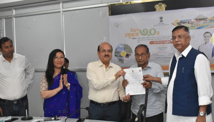 মিছন বসুন্ধৰা ৩.০ ৰ অধীনত ৰাজ্যজুৰি আৰু সমষ্টিভিত্তিক খিলঞ্জীয়া ভূমিহীন পৰিয়াল আৰু প্ৰতিষ্ঠানসমূহৰ সুৰক্ষিত ভূমি অধিকাৰ সুনিশ্চিত কৰাৰ দিশে ডিজিটেল পট্টা,আবন্টন/বন্দৱস্তিৰ পত্ৰ আৰু আবন্টন /বন্দৱস্তিৰ প্ৰস্তাৱ গ্ৰহণৰ পত্ৰ বিতৰণৰ অনুষ্ঠান আজি কামৰূপ মহানগৰ জিলা আয়ুক্ত কাৰ্যালয়ৰ সভাকক্ষত অনুষ্ঠিত হয় । পূৱ গুৱাহাটী সমষ্টিৰ বিধায়ক সিদ্ধাৰ্থ ভট্টাচাৰ্য আৰু পশ্চিম গুৱাহাটী সমষ্টিৰ বিধায়ক ৰমেন্দ্ৰ নাৰায়ণ কলিতাই ভূমি পট্টা বিতৰণ কৰে । আজি আনুষ্ঠানিকভাৱে ৩৫ নং নিউ গুৱাহাটীৰ ১২ গৰাকী আৰু ৩৬ নং চেণ্ট্ৰেল গুৱাহাটীৰ ২৪ গৰাকী ব্যক্তিক পট্টা প্ৰদান কৰা হয় আৰু পৰৱৰ্তী পৰ্যায়ত বাকী থকা ব্যক্তিসকলৰ মাজত ভূমি পট্টা বিতৰণ কৰা হ’ব ।আজিৰ অনুষ্ঠানত নিউ গুৱাহাটী সম জিলা আয়ুক্ত অৰুন্ধতী নৰহ মিপুন,অতিৰিক্ত জিলা আয়ুক্তদ্বয় হেমাংগ নবিশ আৰু ৰাজা বৈশ্য,বিভিন্ন অনুষ্ঠান -প্ৰতিষ্ঠানৰ বিষয়া তথা জিলা প্ৰশাসনৰ বিষয়া -কৰ্মচাৰীসকল উপস্থিত থাকে ।