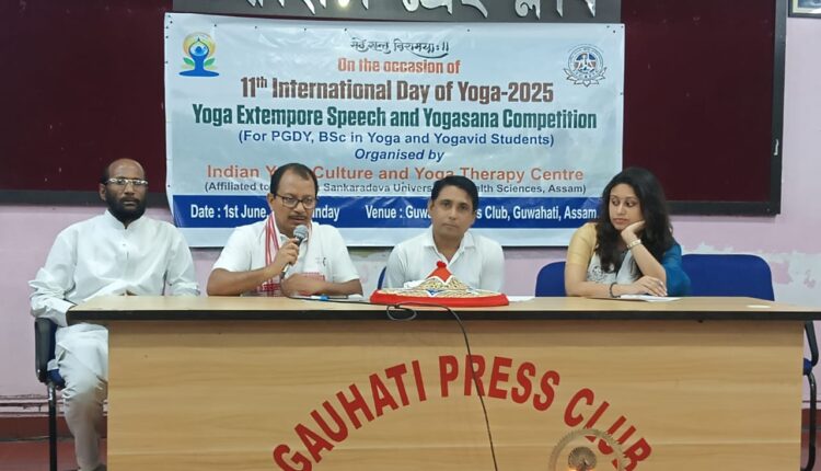 একাদশ বিশ্ব যোগ দিৱস উদযাপনৰ‌ প্ৰাৰম্ভিক প্ৰস্তুতি হিচাপে ভাৰতীয় যোগ সংস্কৃতি আৰু যোগ চিকিৎসা কেন্দ্ৰ আৰু পূৰ্বাঞ্চল যোগ মহাবিদ্যালয়ৰ উদ্যোগত পহিলা জুনত গুৱাহাটী প্ৰেছ ক্লাবত এখন যোগ বিষয়ক আকস্মিক বক্তৃতা আৰু যোগাসন প্ৰতিযোগিতা অনুষ্ঠিত হৈ যায়। প্ৰতিযোগিতা উদ্বোধন কৰে গুৱাহাটীৰ প্ৰেছ ইনফৰমেছন বুৰ’ৰ (পিআইবি) সহকাৰী সঞ্চালক প্ৰণৱ কুমাৰ নাথে। ভাৰতীয় যোগ সংস্কৃতি আৰু যোগ চিকিৎসা কেন্দ্ৰৰ প্ৰতিস্থাপক সভাপতি যোগাচাৰ্য শুভাশিসৰ আদৰণি ভাষণেৰে আকস্মিক বক্তৃতা প্ৰতিযোগিতা আৰম্ভ হয় । প্ৰতিযোগিতাত বিচাৰক হিচাপে উপস্থিত থাকে পাণ্ডু মহাবিদ্যালয়ৰ সহযোগী অধ্যাপক ডঃ শান্তনু ৰায়চৌধুৰী আৰু গুৱাহাটী অখিল ভাৰতীয় আয়ুৰ্বিজ্ঞান প্ৰতিষ্ঠানৰ(এইমছ) যোগ চিকিৎসক অংকিতা বৰঠাকুৰে। যোগাসন প্ৰতিযোগিতাত বিচাৰক হিচাপে উপস্থিত থাকে সুৰেশ পোদ্দাৰ, দিব্যজ্যোতি ডেকা আৰু অৰুন্ধতী তালুকদাৰে। মহাপুৰুষ শ্ৰীমন্ত শংকৰদেৱ ইউনিভাৰ্ছিটি অফ হেলথ চায়েন্সৰ যোগ পাঠ্যক্ৰমৰ ছাত্ৰ-ছাত্ৰীসকলৰ মাজত অনুষ্ঠিত এই প্ৰতিযোগিতাৰ ফলাফল তথা পুৰস্কাৰসমূহ অহা একাদশ বিশ্ব যোগ দিৱসৰ উদযাপন সমাৰোহত প্ৰদান কৰা হ’ব।
