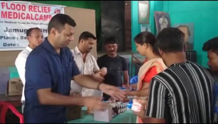জামুগুৰিহাটত বান পিড়িত লোকসকলক খাদ্য সামগ্ৰী প্ৰদান চতিয়া খণ্ড উন্নয়ন বিষয়া পলক শৰ্মাৰ