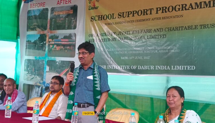 শোণিতপুৰৰ ঘোঁৰামাৰীৰ চপাগুৰি নিম্ন বুনিয়াদী বিদ্যালয়ত ঘোঁৰামাৰীস্থিত ডাবৰ ইণ্ডিয়াৰ জীৱন্টী ৱেলফেয়াৰ এণ্ড চেৰিটেবল ষ্ট্ৰাষ্টৰ উদ্যোগত বিদ্যালয় সহযোগ শীৰ্ষক এক অনুষ্ঠান অনুষ্ঠিত হয় । অনুষ্ঠান উন্মোচন কৰে ডাবৰ ইণ্ডিয়া প্ৰাইভেট লিমিটেডৰ ভি পি ( এইচ আৰ আৰু আই আৰ ) পাৰ্থ গাংগুলীয়ে । অনুষ্ঠানত ডাবৰৰ চি এছ আৰ উইংগৰ স্বৰজিচুমা বসুমতাৰী, ডাবৰ ইণ্ডিয়া তেজপুৰৰ ইউনিট হেড আলোক কুমাৰ ডুবে , এইচ আৰ মেনেজাৰ মঞ্জিৎ দাস , ঘোঁৰামাৰী গাঁও পঞ্চায়তৰ সভানেত্ৰী পদ্মা বসুমতাৰী, বালিপৰা শিক্ষাখণ্ডৰ সমল ব্যক্তি তপন দাসৰ লগতে ৰাইজ উপস্থিত থাকে ।উল্লেখ্য যে ডাবৰ ইণ্ডিয়াই উক্ত বিদ্যালয়খনৰ টিনপাত , ৱাল পেইনটিং, চাৰিসীমাৰ বেৰ, পকী গেট, খেল সুবিধা ইত্যাদি পুনৰ নিৰ্মাণ কৰি সু- ব্যৱস্থা কৰি দিছে ।
