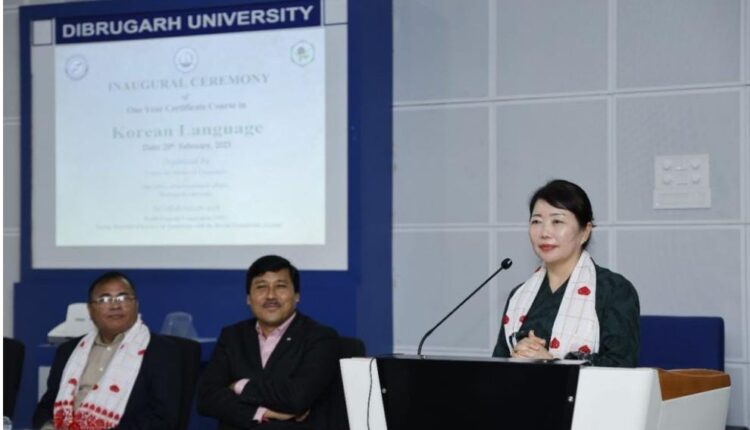 উজনি অসমৰ অন্যতম উচ্চশিক্ষাৰ প্ৰতিষ্ঠান ডিব্ৰুগড় বিশ্ববিদ্যালয়ত আৰম্ভ হৈছে কোৰিয়ান ভাষা শিক্ষণৰ এবছৰীয়া চাৰ্টিফিকেট পাঠ্যক্ৰমৰ। আজি অনুষ্ঠিত এখন গাম্ভীৰ্যপূৰ্ণ সভাত এই শিক্ষণ কাৰ্যসূচীৰ শুভাৰম্ভনি ঘটোৱা হয়। ডিব্ৰুগড় বিশ্ববিদ্যালয়ৰ উদ্যোগত আৰু গুৱাহাটীস্থিত বৰাহী ফাউণ্ডেশ্যনৰ সহযোগত কোৰিয়াৰ চেজংস্থিত ‘ৱৰ্ল্ড ফ্ৰেগ্ৰান্ট ক’ৰ্পোৰেশ্যন’ এ ( World Fragrant Cooperation) এই এবছৰীয়া শৈক্ষিক কাৰ্যসূচী ৰূপায়ণ কৰিব।