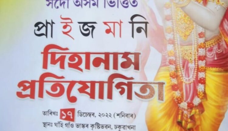 অসমৰ অন্যতম লোক কৃষ্টি,পৰম্পৰাগত লোক নাম  দিহা নামক সাৰ্বজনীন কৰাৰ মানসেৰে  ঢকুৱাখনাৰ অগ্ৰণী দিহা নাম দল লখিমী দিহা নাম দলৰ উদ্যোগত সদৌ অসম ভিত্তিত প্ৰাইজমানি দিহা নাম প্ৰতিযোগিতাৰ অনুষ্ঠিত কৰা হৈছে।অহা ১৭ ডিচেম্বৰ শনিবাৰে ঢকুৱাখনা নগৰৰ ঘাহি গাঁওৰ ভাস্কৰ কৃষ্টি ভৱন প্ৰাংগণত অনুষ্ঠিত হব লগীয়া এই দিহা নাম প্ৰতিযোগিতাৰ প্ৰথম শ্ৰেষ্ঠ দলক নগদ ১৫ হাজাৰ টকা ,দ্বিতীয় শ্ৰেষ্ঠ দলক নগদ ১০ হাজাৰ টকা , তৃতীয় শ্ৰেষ্ঠ দলক নগদ ৭ হাজাৰ টকা ,চতুৰ্থ শ্ৰেষ্ঠ দলক নগদ ৫ হাজাৰ টকা আৰু পঞ্চম শ্ৰেষ্ঠ দলক নগদ ৩ হাজাৰ টকাৰে  পুৰস্কৃত কৰা হ’ব ।তাৰোপৰি প্ৰতিযোগিতাৰ শ্ৰেষ্ঠ নামাচাৰ্য  হিচাপে বিবেচিত গৰাকীক নগদ ১ হাজাৰ টকা আৰু শ্ৰেষ্ঠ খোল আৰু নাগাৰা বাদক গৰাকীক নগদ ১হাজাৰ টকাৰে পুৰস্কৃত কৰা হ’ব। প্ৰতিযোগিতাৰ আয়োজক সমিতিৰ সভাপতি দিগন্ত তামুলীয়ে ৰাজ্যখনৰ ভিন্ন প্ৰান্তৰৰ আগ্ৰহী প্ৰতিযোগী সকলক 9678640513 , 7638895693 আৰু 6002511844 নম্বৰত যোগাযোগ কৰি প্ৰতিযোগিতাৰ নিয়মাৱলী অৱগত হৈ নামভৰ্তি কৰিবলৈ আহ্বান জনাইছে। তাৰোপৰি সভাপতি গৰাকীয়ে উক্ত প্ৰতিযোগিতাত লোক সংস্কৃতি প্ৰেমী ৰাইজৰ উপস্থিতি আৰু দিহা পৰামৰ্শ আন্তৰিকতাৰে কামনা কৰিছে।