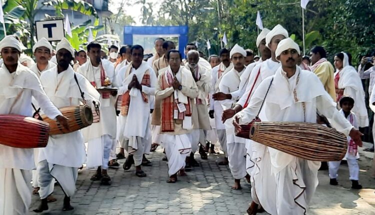 জগতগুৰু মহাপুৰুষ শ্ৰীমন্ত শংকৰদেৱ গুৰুজনাৰ অপূৰ্ব সৃষ্টি এক শৰণ নামধৰ্মৰ অন্যতম হৃদপিণ্ড স্বৰূপ নামঘৰ । সাংস্কৃতিক ভাবে ভক্ত প্ৰাণ ৰাইজক একত্ৰিত কৰিবলৈ গুৰুজনাই সৃষ্টি কৰা এই নামঘৰ সংস্কৃতিৰ অন্যতম প্ৰশাখা স্বৰূপ ঢকুৱাখনা মহকুমাৰ মকৰাচুক নামঘৰৰ নব নিৰ্মিত গৃহটো আজি শুভ উদ্ধোধন কৰা হয়। উত্তৰ ঢকুৱাখনা পঞ্চায়তৰ মকৰাচুক গাঁওৰ ধৰ্ম প্ৰাণ ভকত বৈষ্ণৱ , আই বাপ সমস্তৰ দীৰ্ঘদিনিয়া শ্ৰম আৰু অৰ্থানুদানেৰে নৱ নিৰ্মিত মকৰাচুক নামঘৰ গৃহ উন্মোচন আৰু মণিকূটৰ গুৰুআসন প্ৰতিষ্ঠা উপলক্ষত দুদিনীয়া ধৰ্মীয় আৰু সাংস্কৃতিক কাৰ্যসূচী অনুষ্ঠিত কৰা হয় । গাওঁখনৰ প্ৰতিটো পৰিয়ালৰ প্ৰতিগৰাকী সদস্যৰ আত্মোৎস্বৰ্গী অৱদানৰ প্ৰতিভূ হিচাবে পূৰ্ণতা লাভ কৰা এই শংকৰী কৃষ্টি সংস্কৃতিৰ অন্যতম পীঠ ভূমি নামঘৰ ভাগিৰ মুখ্য দ্বাৰ শুভ উন্মোচন কৰে ধৰ্ম প্ৰাণ ব্যক্তি লক্ষী দত্তই। পুৱা উদযাপন সমিতিৰ সভাপতি কনক বৰুৱাই ধৰ্ম ধ্বজা উত্তোলনৰ পাছতে অনুষ্ঠিত মূল কাৰ্যসূচী নামঘৰৰ মণিকূট ভাগিত স্থাপিত গুৰু আসন প্রতিষ্ঠা কৰে বৈষ্ণৱী পীঠস্থান মাজুলীৰ চামগুৰি সত্ৰৰ ডেকা সত্ৰাধিকাৰ তিলক চন্দ্ৰ গোস্বামী প্ৰভুৱে । বৈষ্ণৱ সাধক গোস্বামী যথা সময়ত আহি ভগামুখ তিনিআলিত উপস্থিত হোৱাৰ সময়তে উদযাপন সমিতিৰ সমূহ কৰ্মকৰ্তা আৰু গাঁওবাসী ৰাইজে গায়ন বায়ন আৰু মাংগলিক ধৱনীৰে সত্ৰাধিকাৰ গৰাকীক নামঘৰলৈ আদৰি আনে । গাঁওবাসীৰ অতিথ্যত অভিভূত সত্ৰাধিকাৰ গৰাকীয়ে নিজৰ বক্তব্যত আজিৰ এনে বৈকুণ্ঠপুৰী সদৃশ পৰিবেশে গুৰুজনাৰ আদৰ্শ আৰু গুণ গৰিমাৰ প্ৰকৃত মূল্যায়ন কৰা বুলি কৈ ভকত বৈষ্ণবৰ এনে সদা গুৰু বন্দনাই অনাদি অনন্ত কাললৈ মহাপুৰুষজনাক উজ্জীৱিত কৰি ৰাখিব বুলি কয়। গোস্বামীয়ে এনে পৰিবেশৰ সতে একাত্ম হবলৈ পায় স্বৰ্গ স্পৰ্শ কৰা যেন লাগিছে বুলি প্ৰকাশ কৰি ইয়াতকৈ যদি কিবা পৰম সুখ আছে তাৰো প্ৰাপ্তি অনুভৱ কৰিছো বুলি মন্তব্য কৰি গুৰু আসন ভাগি প্ৰতিষ্ঠা কৰে । ইয়াৰ পাছতে চামগুৰি সত্ৰৰ ধনী ৰাম বৰা হাতীমতাই শৰাই প্ৰতিষ্ঠা কৰি নাম প্ৰসঙ্গ আৰু ভাগৱত পাঠ কৰে । সমীপৰ অগণন ভকত বৈষ্ণবৰ অংশ গ্ৰহনেৰে উজ্জীৱিত হৈ পৰা অনুষ্ঠান ভাগিত ধেমাজি কেন্দ্ৰীয় হৰি নাম দলৰ শ্ৰুতিমধুৰ হৰি নামে উপস্থিত ভক্ত বৈষ্ণৱ সকলক আপ্লুত কৰে । নিশালৈ অনুষ্ঠিত সাংস্কৃতিক অনুষ্ঠানৰ শুভ উদ্ধোধন কৰে উত্তৰ ঢকুৱাখনা পঞ্চায়তৰ সভানেত্রী ডেনি ফুকনে । কাইলৈ সন্ধিয়া মণি কাঞ্চন নাট্য গোষ্ঠীৰ সৌজন্যত”দক্ষ যজ্ঞ” ভাওনা মঞ্চস্থ হব ।
