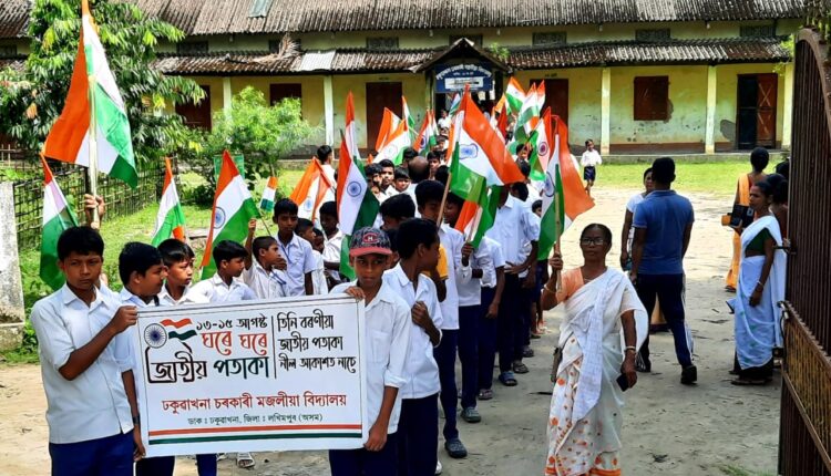 স্বাধীনতাৰ অমৃত মহোৎসৱ উপলক্ষে ৭৬ সংখ্যক স্বাধীনতা দিৱসটো সাৰ্বজনীন ভাৱে উদযাপনৰ আহ্বানেৰে বৃহস্পতি বাৰে এক সজাগতামূলক প্ৰভাত ফেৰী উলিওৱা হয় ঢকুৱাখনাত। ১৮৭২ চনতে প্ৰতিষ্ঠা লাভ কৰা ঢকুৱাখনাৰ ঐতিহ্য বহনকাৰী ঢকুৱাখনা চৰকাৰী মজলীয়া বিদ্যালয়ৰ শিক্ষক শিক্ষাৰ্থীৰ সহযোগিতাত পুৱা ৯-৩০ বজাত বিদ্যালয় প্রাংগনৰ পৰা উলিওৱা হয় এই প্ৰভাত ফেৰী। বিদ্যালয়ৰ প্ৰধান শিক্ষয়িত্ৰী পদ্মাৱতী কোঁচৰ নেতৃত্বত আৰু শিক্ষক সকলৰ সহযোগত বিদ্যালয়খনৰ শতাধিক শিক্ষাৰ্থীয়ে হাতে হাতে জাতীয় পতাকা লৈ ঘৰে ঘৰে জাতীয় পতাকা উত্তোলন কৰক , জাতীয় পতাকা আমাৰ গৌৰৱ , ঘৰে ঘৰে পতাকা উত্তোলন কৰি স্বাধীনতাৰ অমৃত মহোৎসৱ উদযাপন কৰক , আমাৰ দেশ মহান আদি বিভিন্ন শ্লোগান দি ঢকুৱাখনা নগৰ চাৰিআলি পৰিভ্রমন কৰি পুনৰ বিদ্যালয় প্ৰাংগণত উপস্থিত হয়। পাছত মহোৎসৱ সতে সংগতি ৰাখি বিদ্যালয় কৰ্তৃপক্ষৰ উদ্যোগত শিক্ষাৰ্থী সকলৰ মাজত দেশপ্ৰেম মূলক গীত , সৃষ্টিমূলক নৃত্য ,জাতীয় পতাকা অংকন প্ৰতিযোগিতাকে ধৰি বিভিন্ন সাহিত্য আৰু সাংস্কৃতিক প্ৰতিযোগিতা অনুষ্ঠিত কৰা হয়।