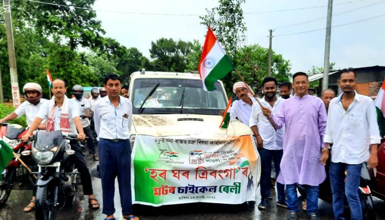 ভাৰতবর্ষৰ  গৌৰৱোজ্জ্বল ৭৬ সংখ্যক স্বাধীনতা দিৱসৰ সতে সংগতি ৰাখি ৰাষ্ট্ৰজুৰি পালিত হোৱা স্বাধীনতাৰ অমৃত মহোৎসৱৰ সফল উদযাপনৰ বাৰ্তা বহন কৰি শনিবাৰে ঢকুৱাখনাত ত্ৰিৰংগা সজাগতা শোভাযাত্ৰা উলিওৱা হয় । ঢকুৱাখনা  ৰাজহ চক্ৰ বিষয়াৰ কাৰ্যালয়ৰ উদ্যোগত শনিবাৰে  দুপৰীয়া চক্ৰ বিষয়া ৰাহুল দলেৰ নেতৃত্বত ,কাননগুহ জীতেন গগৈ , ১২ গৰাকী লাট মণ্ডল , চক্ৰটোৰ লাট গাঁও প্রধান সন্থাৰ সভাপতি ভোগেশ্বৰ চমুৱা ,সম্পাদক খগেন পেগু সহ ৪০ গৰাকী গাঁও প্ৰধান আৰু তৰণী সমাজৰ সহযোগত প্ৰবল বৰষুণকো উপেক্ষা কৰি  উলিওৱা হয় বৃহৎ ত্ৰিৰংগা সজাগতা শোভাযাত্ৰা । অৰ্ধশতাধিক  বাইকত  ত্ৰিৰংগ পতাকা লৈ  বন্দে মাতৰম ধ্বনি দি ,দেশপ্ৰেম মূলক গীতৰ প্ৰচাৰেৰে চক্ৰ বিষয়া দলেৰ নেতৃত্বত যোৱা সজাগতা শোভাযাত্ৰাকাৰী সকলে ৰাজহ চক্ৰটোৰ  বৃহৎ এলেকা ৰাজপথেৰে পৰিভ্ৰমণ কৰে । শোভাযাত্ৰাকাৰী সকলে গৌৰৱোজ্জল স্বাধীনতাৰ অমৃত মহোৎসৱটি ঘৰে ঘৰে উদযাপন কৰি  স্বাভিমানী দিৱসটোৰ সতে একাত্ম হোৱাৰ আহ্বান জনায় পুনৰ কাৰ্য্যালয়ত ত্ৰিৰংগা শোভাযাত্ৰাৰ সামৰণি মাৰে । ইপিনে ঢকুৱাখনাৰ অগ্ৰণী ইংৰাজী মাধ্যমৰ নামজ্বলা শিক্ষানুষ্ঠান  চেইণ্ট থমাছ স্কুলৰ অধ্যক্ষ চেবি এম বেবীৰ উদ্যোগত আৰু সমূহ শিক্ষক শিক্ষাৰ্থীৰ সহযোগত বৃহৎ সজাগতা সমদল উলিওৱা হয় । সমগ্ৰ ঢকুৱাখনা নগৰাঞ্চল পৰিভ্ৰমণ কৰি পৰৱৰ্তী সময়ত বিদ্যালয় প্ৰাংগণত দেশভক্তি মূলক বৰেণ্য সাংস্কৃতিক কাৰ্যসূচী অনুষ্ঠিত কৰা হয় । তেনেকৈ পশ্চিম ঢকুৱাখনা উচ্চ মাধ্যমিক বিদ্যালয় ,ঢকুৱাখনা উচ্চতৰ মাধ্যমিক বিদ্যালয় , ঢকুৱাখনা চেণ্ট্ৰেল স্কুল আদি শিক্ষানুষ্ঠানৰ উদ্যোগতো বিশাল ত্ৰিৰংগা সজাগতা শোভাযাত্ৰা আৰু প্ৰভাত ফেৰী উলিয়াই স্বাধীনতাৰ অমৃত মহোৎসৱৰ সৈতে জনসাধাৰণক সম্পৃক্ত হোৱাৰ লগতে ঘৰে ঘৰে স্বাভিমানী জাতিয় পতাকা উত্তোলনৰ আহ্বান জনায়।