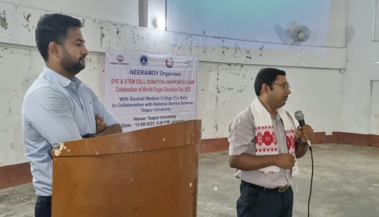 নিৰাময়ৰ উদ্যোগত তেজপুৰ বিশ্ববিদ্যালয়ৰ সহযোগত “৭৫ তম আজাদী কা অমৃত মহোৎসৱ “ৰ লগত সংগতি ৰাখি world Organ donation Day উপলক্ষে তেজপুৰ বিশ্ববিদ্যালয়ৰ চন্দ্ৰপ্ৰভা শইকীয়ানী প্ৰেক্ষাগৃহত নেত্ৰ্দান আৰু Stem cell দানৰ এখন সজাগতা সভা অনুষ্ঠিত হয়। সভাৰ উদ্দেশ্য ব্যাখ্যা কৰে নিৰাময়ৰ ট্ৰাষ্টি পল্লৱী নেওগ বৰাই।উক্ত সভাৰ আঁত ধৰে তেজপুৰ বিশ্ববিদ্যালয়ৰ অধ্যাপক ডঃ অমিয় কুমাৰ দাসে। সভাখনত তেজপুৰ চিকিৎসা মহাবিদ্যালয়ৰ চিকিৎসক ডাঃ ৰাজীৱ দাস, ডাঃ মেথিউ চেভিঅ সমল ব্যক্তি হিচাপে নেত্ৰ দানৰ প্ৰয়োজনীয়তাৰ বিষয়ে আলোচনা কৰে। নিৰাময়ৰ সভাপতি কুশল ডেকাই নেত্ৰ দানৰ সজাগতাৰ ওপৰত ব্যক্তব্য ৰাখে।বিশ্ববিদ্যালয়ৰ অধ্যাপক প্ৰমুখ্যে প্ৰায় দুই শতাধিক শিক্ষাৰ্থীয়ে এই অনুষ্ঠানত অংশগ্ৰহন কৰে। উক্ত সভাতেই তেজপুৰ বিশ্ববিদ্যালয়ৰ ৰসায়ন বিজ্ঞান বিভাগৰ জ্যেষ্ঠ অধ্যাপক ডঃ ৰবীন দত্তকে আদি কৰি বহুসংখ্যক লোকে মৰণোত্তৰ ভাৱে নেত্ৰ্দানৰ বাবে সন্মতি পত্ৰত স্বাক্ষৰ কৰে। নেত্ৰ দানৰ সজাগতাৰ লগতে অনুষ্ঠানটোত ষ্টেমচেল দানৰ সজাগতাৰ ওপৰত আলোকপাত কৰে গুৱাহাটী চিকিৎসা মহাবিদ্যালয়ৰ নেত্ৰ ভঁৰালৰ কৰ্মচাৰী হিৰক শৰ্মাই। সভাখনত বিশেষ সহযোগিতা আগবঢ়াই নিৰাময়ৰ ফালৰ পৰা বিকাশ বৰুৱা আৰু বাসুদেৱ কলিতা আৰু বিশ্ববিদ্যালয়ৰ নেশ্যনেল চাৰ্ভিছ স্কিমৰ ছাত্ৰ ছাত্ৰীসকলে।