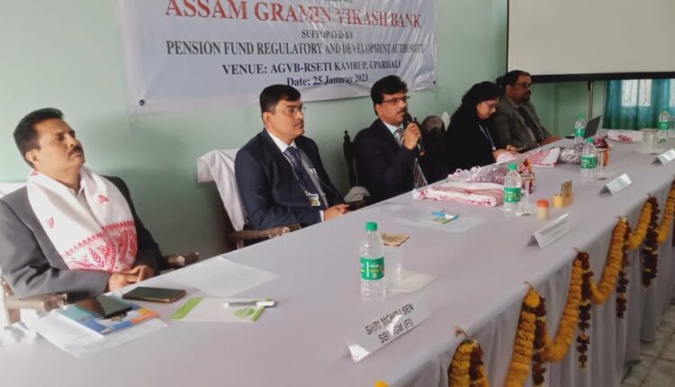 অসম গ্রামীণ বিকাশ বেংকৰ উদ্যোগত আৰু পি এফ আৰ ডি অফ নতুন দিল্লীৰ সহযোগত উপৰহালীস্থিত গুৱাহাটী মহকুমা বজাৰ সমিতিৰ সভাগৃহত যোৱা ২৫ জানুৱাৰীত এখন সজাগতা মূলক সভা অনুষ্ঠিত হয়। সভাত মুখ্য অতিথি হিচাপে উপস্থিত থাকি পি.এফ.আৰ.ডি.এফ, নতুন দিল্লীৰ মূখ্য মহা প্রৱন্ধক আশিষ কুমাৰে কেন্দ্রীয় চৰকাৰৰ এই আঁচনিখনৰ ওপৰত আলোকপাত কৰে। লগতে উপস্থিত থকা পি.এফ.আৰ. ডি. এফৰ উপ মহাপ্রবন্ধক প্রিয়াংকা গুপ্তাই অটল পেঞ্চন যোজনাৰ বৈশিষ্ট্য প্রয়োজনীয়তা, লাভালাভ, এই আচনি অন্তর্ভুক্তি আদি বিভিন্ন বিষয়ৰ ওপৰত বিস্তৃত বিৱৰণ দাঙি ধৰে। অনুষ্ঠানত অসম গ্রামীণ বিকাশ বেংকৰ অধ্যক্ষ দেবাশিষ গংগোপধ্যায় আদষণি ভাষণ পাঠ কৰা সভাত ভাৰতীয় ষ্টেট বেংকৰ সহকাৰী মহা মহাপ্ৰৱন্ধক মনোজ চেন, কামৰূপ জিলা জিলা অগ্রণী বেংক বিষয়া ধর্মেন্দ্র সিং, অসম ৰাজ্যিক গ্রামীণ জীৱিকা অভিযানৰ প্রকল্প প্রবন্ধক প্রিতম কাশ্যপে উপস্থিত থাকি আঁচনি ওপৰত ভাষণ প্ৰদান কৰে। সভাত অসম গ্রামীণ বিকাশ বেংকৰ মুখ্য কাৰ্যালয় বিষয়া দর্পণ বৰাই আঁতধৰা অনুষ্ঠানটোত কামৰূপ জিলাৰ বিভিন্ন বেংকৰ পৰিচালক, অসম গ্ৰামীণ জীৱিকা অভিযানৰ জিলা আৰু ব্লক পৰ্যায়ৰ বিষয়ববীয়া, ডাকঘৰ পঞ্চায়ত আদি বিভিন্ন বিভাগৰ বিষয় ববীয়াসকল উপস্থিত থাকে।