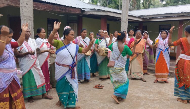 পশ্চিম গুৱাহাটীৰ ৰাণীৰ পাৰ্শ্ববৰ্তী পাথৰখামাৰ উমচাও গাঁৱত ৰাভা জনগোষ্ঠীৰ মহিলাৰ পৰম্পৰাগত বিহু উদযাপন