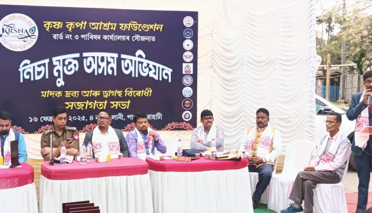 কৃষ্ণ কৃপা আশ্ৰম ফাউণ্ডেশ্যনৰ উদ্যোগত আৰু গুৱাহাটী পৌৰ নিগমৰ ৩ নং ৱাৰ্ডৰ পাৰিষদ কল্লোল চক্ৰৱৰ্তীৰ সহযোগত ১৬ ফেব্ৰুৱাৰীত পাণ্ডুৰ ৪ নং কলনিত ” নিচা মুক্ত অসম অভিযান” শীৰ্ষক এক মাদকদ্ৰব্য আৰু ড্ৰাগছ বিৰোধী সজাগতা সভা অনুষ্ঠিত হয়। এই অনুষ্ঠানৰ মূল উদ্দেশ্য আছিল পাণ্ডু অঞ্চলৰ যুৱ সমাজক মাদক দ্ৰব্য আৰু ড্ৰাগছৰ অপব্যৱহাৰৰ ভয়াবহতাৰ পৰা সাৱধান কৰি সজাগতা সৃষ্টি কৰা। আনহাতে এই উপলক্ষে অনুষ্ঠিত অনুষ্ঠানত মহানগৰ আৰক্ষীৰ জালুকবাৰী সংমণ্ডলৰ সহকাৰী আৰক্ষী আয়ুক্ত আৰক্ষীৰ অনুকূল মালাকাৰ, অসম খনি উন্নয়ন নিগমৰ উপাধ্যক্ষ অশোক কুমাৰ ভৰালী, ৩ নং ৱাৰ্ডৰ পাৰিষদ কল্লোল চক্ৰৱৰ্তী ,ৰাজ্যিক পৰিবহণ কৰ্মচাৰী সন্থাৰ প্ৰাক্তন সাধাৰণ সম্পাদক তথা শ্ৰমিক নেতা দ্বিজেন লহকৰ অসম ৰাজ্যিক দ্ৰাগ বিৰোধী পৰিষদৰ উপাধ্যক্ষ জিতু বৰগোহাঞি,ড্ৰাগছ সংস্থাপন কেন্দ্ৰৰ প্ৰকল্প সঞ্চালক অনুপম ৰোহিত, বিশিষ্ট শৰীৰচৰ্চা বিদ তথা আন্তঃৰাষ্ট্ৰীয় খেলুৱৈ ৰাহুল শ্বেখকে ধৰি বহুকেইজন বিশিষ্ট ব্যক্তি উপস্থিত থাকে । অনুষ্ঠানত ভাগ লোৱা প্ৰায় ৫০০ স্থানীয় বাসিন্দাই মাদক দ্ৰব্য আৰু ড্ৰাগছৰ বিৰুদ্ধে যুঁজ দিয়াৰ সংকল্প গ্ৰহণ কৰে। অনুষ্ঠানত কৃষ্ণ কৃপা আশ্ৰমৰ সম্পাদক ইন্দ্ৰজিৎ সিংহৰ লগতে আন আন কেইবাজনেও নিজৰ ভাষণত কয় যে “মাদকদ্ৰব্য আৰু ড্ৰাগছৰ অপব্যৱহাৰে সমাজৰ ভৱিষ্যত অন্ধকাৰ কৰি তুলিছে। এই অভিযানৰ জৰিয়তে আমি যুৱ সমাজক সজাগ কৰা আৰু এখন নিচা মুক্ত সমাজ গঢ়িবলৈ প্ৰতিশ্ৰুতিবদ্ধ। সহকাৰী আৰক্ষী আয়ুক্ত অনুকুল মালাকাৰে মাদক দ্ৰৱ্য আৰু ড্ৰাগছৰ ভয়াবহতা সন্দৰ্ভত যুৱ সমাজক সজাগ হ’বলৈ আহ্বান জনায়। তেওঁ লগতে কয়, “মাদক দ্ৰব্যৰ বিৰুদ্ধে যুঁজ দিয়াটো কেৱল আৰক্ষীৰ দায়িত্ব নহয়, ই সমাজৰ প্ৰতিজন ব্যক্তিৰে দায়িত্ব।”আৰু এই ভয়াবহতাৰ পৰা যুৱচামক বচাবৰ বাবে আমি সকলোৱে মিলি ব্যৱস্থা গ্ৰহণ কৰিব লাগিব।