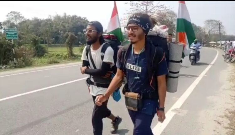 - আজি আবেলি পদব্ৰজে ৰায়পুৰ ছতিশগডৰ পৰা আহি আজি জামুগুৰি হাটত উপস্থিত হয় এই যুৱক দুজন । যুৱক দুজনৰ নাম সৌৰভ দেৱাংগৰ আৰু জিতু শৰ্মা।দুয়োৰে এইদৰে পদব্ৰজে হাতত জাতীয় পতাকা লৈ অহাৰ মহান উদ্দেশ্য হ`ল ইন্ধন জাতীয় পদাৰ্থৰ পৰা নিৰ্গত ধোঁৱাৰ বাবে যিহেতু পৰিৱেশ প্ৰদুষিত হৈ বায়ুমণ্ডল দুষিত হৈ জীৱ জগতৰ হানি বিঘিনি হয় । আৰু এই দুষিত বায়ুমণ্ডল মন্ডলক কিঞ্চিৎ পৰিমাণে হ’লেও ৰোধ কৰাৰ প্ৰচেষ্টাৰ এক অংশ হিচাপে তেওঁ লোকে ভাৰতৰ মুঠ আঠাইশ খন ৰাজ্য পদব্ৰজে ঘুৰাৰ পৰিকল্পনাৰ লৈ জনগণক সজাগ কৰাৰ বাবে ইতিমধ্যে উৰিষ্যা, পশ্চিম বংগ, চিকিম হৈ অসমত উপস্থিত হৈছে । ইয়াৰ পাছত নাগালেণ্ড ,মণিপুৰ ,মেঘালয় ,ত্ৰিপুৰা অৰুণাচল প্ৰদেশ উপৰিও ভাৰতত অন্যান্য ৰাজ্য পদব্ৰজে ভ্ৰমণ কৰাৰ কথা জানিব দিয়ে উক্ত যুৱক দুজনে । এই যুৱক দুজনৰ মহান উদ্দেশ্য সফল হোৱাৰ বিভিন্ন ৰাজ্যৰ সমাজ সচেতন ব্যক্তি সকলে কামনা কৰিছে।