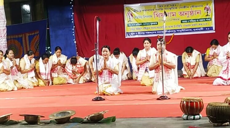 গুৱাহাটী মহানগৰীৰ বামুণীমৈদামৰ জ্যোতি নগৰস্থিত শ্ৰীমন্ত শংকৰদেৱ সমাজ কীৰ্তন হল ঘৰ প্ৰাঙ্গণত বিগত বছৰৰবোৰৰ দৰে এইবেলিও ৭ বিহু উপলক্ষে পৰম্পৰাগতভাৱে উদযাপিত “থিয়নাম” যোৱা ২০ এপ্রিল তাৰিখে আয়োজন কৰা হয়। সমাজৰ সাংস্কৃতিক গোষ্ঠীৰ সভাপতি নৱজিৎ চৌধুৰী, সম্পাদক হিতেশ পাঠক, সাংস্কৃতিক সম্পাদক মৃত্যুঞ্জয় চৌধুৰীয়ে আঁত ধৰা অনুষ্ঠানত সন্ধ্যা বন্তি প্ৰজ্বলন কৰে ডা: প্ৰণৱ বৰুৱাই। ৬-১০ বজাত থিয় নাম মুকলি কৰে বাবুল বৰাই। অনুষ্ঠানত অৱনী ৰঞ্জন পাঠকৰ লগতে কেইবাজনো বিশিষ্ট ব্যক্তি উপস্থিত আছিল। অনুষ্ঠানত ৰীণা মহন্ত আৰু কল্যাণী তালুকদাৰৰ দল, সঞ্জয় পাঠকৰ দল, শিৰোমণি সংঘ নাৱৰীয়া দল (পাঠক: গীতা পাটোৱাৰী) আৰু শ্ৰীমন্ত শংকৰদেৱ সমাজ নাৱৰীয়া দল (পাঠক : হৰেকৃষ্ণ তালুকদাৰ) দলে অংশ লৈ থিয় নাম পৰিৱেশন কৰে।