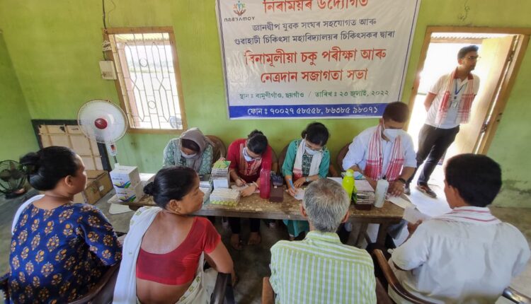নিৰাময়ৰ উদ্যোগত আৰু জ্ঞানদ্বীপ যুৱক সংঘৰ সহযোগত গুৱাহাটী চিকিৎসা মহাবিদ্যালয়ৰ চিকিৎসকৰ দ্বাৰা আজি ইংৰাজী ২৩ জুলাইত বামুনীগাঁও (কামৰূপ) বিনামূলীয়া চকু চিকিৎসা শিবিৰ আৰু নেত্ৰদানৰ সজাগতা সভা অনুষ্ঠিত হয়। উক্ত অনুষ্ঠানৰ আত ধৰে সংঘৰ উপদেষ্টা মনোজ দাস। সভাখনৰ উদ্দেশ্য ব্যাখ্যা কৰে নিৰাময়ৰ সভাপতি কুশল ডেকাই। উক্ত সভাত নেত্ৰদানৰ সজাগতাৰ বাবে বক্তৃতা প্ৰদান কৰে গুৱাহাটী চিকিৎসা মহাবিদ্যালয়ৰ নেত্ৰভাণ্ডাৰৰ বিশেষজ্ঞ হীৰক জ্যোতি শৰ্মাই। সজাগতা সভাৰ শেষ হোৱাৰ পিছত আৰম্ভ হয় বিনামূলীয়া চকু চিকিৎসা শিবিৰ। গুৱাহাটী চিকিৎসা মহাবিদ্যালয়ৰ ৫ জনীয়া চিকিৎসকৰ দল ক্ৰমে ডা: ছেমিম চুলতানা, ডা: পায়েল সিংঘলা, ডা: পুজা দেৱী, ডা: নবাৰুণ ধৰ আৰু ৰিংছৰ বাগলাৰী ডাঙৰীয়াই বিনামূলীয়া চিকিৎসা সেৱা আগবঢ়ায় লগতে বিনামুলীয়া চকুৰ ঔষধ আৰু মাল্টিভিটামিন বিতৰণ কৰা হয়। উক্ত অনুষ্ঠানটিতে কিছু সংখ্যক লোকে মৰণোত্তৰ ভাবে নেত্ৰদানৰ সন্মতি পত্ৰত স্বাক্ষৰ কৰে। এই ছেগতে অনুষ্ঠানটি অনুষ্ঠিত কৰাৰ বাবে জ্ঞানদ্বীপ যুৱক সংঘৰ সভাপতি সম্পাদক তথা সকলো সদস্যৰ সহায় -সহযোগিতাৰ বাবে ধন্যবাদ জ্ঞাপন কৰিলো।