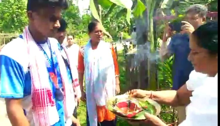 গুৱাহাটীৰ সৰুসজাইত সদ্য সমাপ্তি ঘটা অসম যুৱ অলিম্পিক ২০২২ত ঢকুৱাখনা মহকুমাৰ ক্ৰীড়া ক্ষেত্ৰখনৰ সফলতাৰ বিজয় ধ্বজা উৰুৱাবলৈ সক্ষম হোৱা ঘিলামৰাৰ এগৰাকী যুৱ ক্ৰীড়া প্ৰতিভাধৰ ঘিলামৰাৰ ইন্দিবৰ হাজৰিকাক শুক্ৰবাৰে জন্মস্থানত বিপুল আদৰণি জনোৱা হয় । যুৱ অলিম্পিকত ইন্দিবৰে ১৫০০ মিটাৰ দৌৰ প্ৰতিযোগিতাত স্বৰ্ণ পদক আৰু ৮০০ মিটাৰ দৌৰ প্ৰতিযোগিতাত ব্ৰঞ্জৰ পদক অৰ্জন কৰি সমগ্ৰ লখিমপুৰ জিলাখনৰ লগতে ঘিলামৰালৈ বিৰল কৃতিত্ব কঢ়িয়াই আনিবলৈ সমৰ্থ হয় । প্ৰতিভা সম্পন্ন যুৱ ক্ৰীড়াবিদ ইন্দিবৰে শুক্ৰবাৰে পদক লৈ ঘৰলৈ অহাৰ সময়তে ঘিলামৰাবাসীয়ে পুৱা বেলা ৯ বজাত বিপুল আদৰণি আৰু অভিনন্দন জনাই ।ঘিলামৰা ঘাহি গাঁওৰ উপেন্দ্ৰ হাজৰিকা আৰু সেউতী হাজৰিকাৰ পুত্ৰ ইন্দিবৰক ঘিলামৰা ঘাহি গাঁও যুৱক সংঘ, ঢকুৱাখনা জিলা সূত সন্মিলন , উন্নয়ন পৰিষদ, ঘিলামৰা ব্লক এন এছ ইউ আই , ব্লক যুৱ কংগ্ৰেছ সমিতি ,ঘিলামৰা প্ৰেছ ক্লাব আদি বিভিন্ন সংগঠন আৰু ৰাইজে গোগামুখ-ঘিলামৰা ৰাজ্যিক ঘাই পথৰ চামপৰা দলংৰ পৰা গাড়ী আৰু বাইকেৰে সমদল কৰি ঘৰলৈ আদৰি আনে। স্বৰ্ণ পদক আৰু ব্ৰঞ্জৰ পদক বিজয়ী যুৱ প্ৰতিভাধৰ গৰাকীক ৰাইজে স্বতঃস্ফুট ভাবে ৰাজপথলৈ ওলাই আহি গামোচা পিন্ধাই সম্বৰ্ধনা জনায় । সফল ক্ৰীড়াবিদ গৰাকী ঘৰত উপস্থিত হোৱাৰ সময়তে অগণন শুভাকাংক্ষী উপস্থিত হৈ মঙ্গল ধ্বনিৰ মাজত গাঁওবাসীৰ লগতে ঘিলামৰাৰ বিভিন্ন ব্যক্তি, অনুষ্ঠান, প্ৰতিষ্ঠানে অভিনন্দন জনাই সমুজ্জ্বল ভৱিষ্যত কামনা কৰে।উল্লেখ্য যে গাঁওখনৰ পৰা যুৱ অলিম্পিকলৈ যোৱা দুজন বিজিত খেলুৱৈকো সম্বৰ্ধনা জনোৱা হয় ।