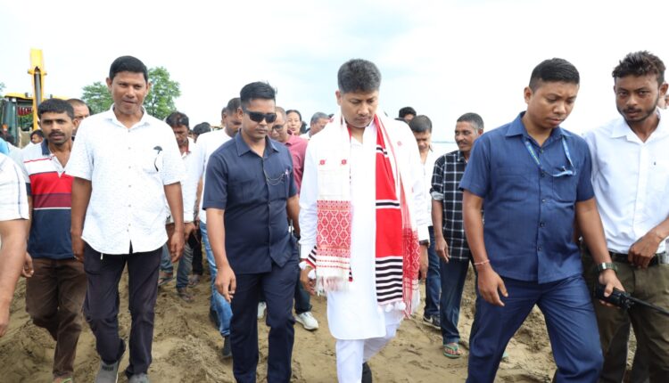 অসম চৰকাৰৰ জলসম্পদ বিভাগৰ মন্ত্ৰী পীযুষ হাজৰীকাই আজি পুৱাৰ ভাগতে লখিমপুৰ জিলাৰ তেলীয়াপথাৰ ঘনচৰাই অঞ্চলত সোৱণশিৰি নদীৰ খহনীয়াই ভীমপৰা – ন-আলি মথাউৰিৰ ক্ষতি কৰা অঞ্চল পৰিদৰ্শন কৰি বিভাগীয়ভাৱে কৰি থকা কামৰ বুজ লয় । লখিমপুৰ লোকসভা সমষ্টিৰ সাংসদ প্ৰদান বৰুৱা আৰু বিধায়ক মানৱ ডেকাৰ সৈতে মন্ত্ৰী হাজৰীকাই অঞ্চলটো পৰিদৰ্শন কৰি উপস্থিত ৰাইজক খহনীয়াত ক্ষতি হোৱা মথাউৰিটো ৰক্ষা কৰিবলৈ বিভাগীয় ভাৱে সকলো ব্যৱস্থা লোৱা হ’ব বুলি আস্বাস প্ৰদান কৰে । আনহাতে উপস্থিত সাংবাদিকৰ প্ৰশ্নৰ উত্তৰত মন্ত্ৰী গৰাকীয়ে কয় যে অঞ্চলটোত খহনীয়া ৰোধৰ বাবে ইতিমধ্যে ১০ কোটি টকাৰ প্ৰকল্প অনুমোদন হৈছে আৰু প্ৰকল্পৰ প্ৰায় ১০ % কাম শেষো হৈছিল । পৰৱৰ্তী সময়ত নদীত পানীৰ পৰিমাণ বৃদ্ধি হোৱা বাবে স্থায়ী প্ৰতিৰোধৰ কাম বন্ধ ৰাখি জৰুৰী মেৰামতিৰ কাম চলাই থকা হৈছে বুলি মন্ত্ৰী গৰাকীয়ে উল্লেখ কৰে । মন্ত্ৰী গৰাকীয়ে কয় যে পানীৰ পৰিমাণ বেছি হৈ থাকিলে স্থায়ী প্ৰতিৰোধৰ কাম কৰিলে কামৰ মান ভাল নহয় আৰু পুঁজি নষ্ট হোৱাৰহে আশংকা থাকে, ফলত পানীৰ পৰিমাণ বেছি হোৱাৰ লগে লগে স্থায়ী কাম বন্ধ ৰাখি জৰুৰীভাৱে খহনীয়া ৰোধৰ কাম কৰি থকা হৈছে । আনহাতে নদীৰ পানী কমি যোৱাৰ লগে লগে অঞ্চলটোত স্থায়ী খহনীয়া ৰোধৰ কাম পুনৰ আৰম্ভ কৰা হ’ব বুলি মন্ত্ৰী হাজৰীকাই উল্লেখ কৰে ।