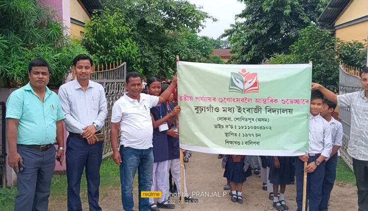 শোণিতপুৰৰ বালিপৰা খণ্ড প্ৰাথমিক শিক্ষা বিষয়া কাৰ্যালয়ৰ অধীনৰ লোক্ৰা মণ্ডল সমল কেন্দ্ৰৰ কেইবাখনো বিদ্যালয়ত আজি অহা ১ জুনৰপৰা অনুষ্ঠিত হ’বলগীয়া তৃতীয় পৰ্যায়ৰ গুণোৎসৱৰ প্ৰস্তুতিৰ অংশ হিচাপে সজাগতামূলক ৰেলী আৰু সজাগতা সভা অনুষ্ঠিত কৰা হয় । দিনৰ ১০:৩০ বজাৰপৰা বুঢ়াগাঁও মধ্য ইংৰাজী বিদ্যালয় আৰু বুঢ়াগাঁও চৰকাৰী প্ৰাথমিক বিদ্যালয় প্ৰাংগনৰপৰা লোক্ৰা চেন্টাৰৰ লগতে সমীপৱৰ্তী গাঁও পৰিভ্ৰমণ কৰোৱায় এক বিশাল সজাগতামূলক ৰেলী উলিয়ায় । ৰেলীত বিদ্যালয় দুখনৰ শিক্ষক-শিক্ষয়িত্ৰী, ছাত্ৰ-ছাত্ৰী, অভিভাৱক, বিদ্যালয় পৰিচালনা সমিতিৰ বিষয়ববীয়াসকলে সক্ৰিয়ভাৱে অংশ কৰে। ৰেলীৰ পি্ছতে অনুষ্ঠিত কৰা হয় সজাগতামূলক সভা। বুঢ়াগাঁও মধ্য ইংৰাজী বিদ্যালয়ৰ পৰিচালনা সমিতিৰ সভাপতি অঞ্জন নাথৰ সভাপতিত্বত অনুষ্ঠিত সভাখনত আঁত ধৰে বিদ্যালয়খনৰ জ্যেষ্ঠ সহকাৰী শিক্ষক পদ্মেশ্বৰ শইকীয়াই আৰু সভাৰ উদ্দেশ্যে ব্যাখ্যা কৰে বিদ্যালয়খনৰ প্ৰধান শিক্ষয়িত্ৰী বিউটী শইকীয়া বৰাই।অনুষ্ঠানটোত উপস্থিত থাকি লোক্ৰা মণ্ডল সমল কেন্দ্ৰৰ সমন্বয়ক প্ৰাঞ্জল বৰাই আগন্তুক গুণোৎসৱৰ মূল্যায়ন প্ৰক্ৰিয়া ,শিক্ষক-শিক্ষাৰ্থী আৰু ৰাইজৰ অংশগ্ৰহণৰ প্ৰয়োজনীয়তা, তথ্য পাতিৰ উন্নীতকৰণ ইত্যাদি বিষয়ত অৱগত কৰে । সভাখনত বুঢ়াগাঁও চৰকাৰী প্ৰাথমিক বিদ্যালয়ৰ প্ৰধান শিক্ষক কল্যাণ গগৈসহ সকলো শিক্ষক, ৰাইজ উপস্থিত থাকে । একেদৰে আজি নয়ালবৰঘাৰী মধ্য ইংৰাজী বিদ্যালয় আৰু নয়ালবৰঘাৰী প্ৰাথমিক বিদ্যালয়তো গুণোৎসৱ সজাগতা ৰেলী আৰু সজাগতা সভা অনুষ্ঠিত কৰে । ৰেলীৰ যোগেদি ৰাইজক সজাগ কৰিবলৈ সৎ প্ৰয়াস কৰা হয় । ৰেলীৰ পিছতে বিদ্যালয়ত অনুষ্ঠিত সজাগতা সভাত গুণোৎসৱৰ বিভিন্ন দিশ, সহযোগিতা ইত্যাদিৰ বিষয়ে আলোচনা কৰা হয় । সভাখনত নয়ালবৰঘাৰী মধ্য ইংৰাজী বিদ্যালয়ৰ প্ৰধান শিক্ষক স্বৰূপ শৰ্মাসহ সমূহ শিক্ষাগুৰু, নয়ালবৰঘাৰী প্ৰাথমিক বিদ্যালয়ৰ প্ৰধান শিক্ষক পংকজ বৰাসহ সমূহ শিক্ষাগুৰু, লোক্ৰা মণ্ডল সমল কেন্দ্ৰ সমন্বয়ক, ৰাইজ, অভিভাৱক উপস্থিত থাকে । সমান্তৰালভাৱে সোণাই নেপালী প্ৰাথমিক বিদ্যালয়তো অনুষ্ঠিত কৰা হয় গুণোৎসৱ সজাগতা ৰেলী আৰু সজাগতা সভা।