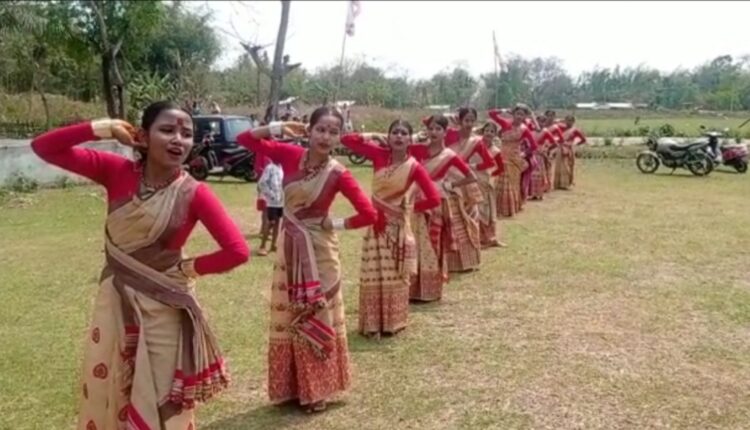 হেপাঁহৰ ৰঙালী লৈ মাজত মাথোঁ কেইটামান দিন । গছে বনে সলাইছে পাত । গছৰ ডালত কুলী কেতেকী জনীয়েও দিছে বসন্ত বতৰা । ঢোল পেঁপাৰ মাত শুনি বিহু তলিলৈ ঢপলিয়াই আহিছে গাভৰুহঁত । ৰঙালীক আদৰিবলৈ ব্যস্ত এতিয়া প্ৰতিজন অসমীয়া । এই ছবি শোণিতপুৰ জিলাৰ জামুগুৰিহাটৰ বিভিন্ন জাতি জনগোষ্ঠীৰ মিলনভূমি হিচাপে পৰিচিত ৰঙাচকুৱা অঞ্চলৰ । সোণালী জয়ন্তী বৰ্ষ উপলক্ষে ৰঙাচকুৱা ব’হাগী মেলাৰ উদ্যোগত ১০ দিনীয়াকৈ আয়োজন কৰিছিল বিহুৰ কৰ্মশালা । জামুগুৰিহাটৰ ভৰলীপৰীয়া বিহুৱা দলৰ নেতৃত্বত অঞ্চলটোৰ শতাধিক কণ কণ শিশুৰ পৰা আৰম্ভ কৰি যুৱক যুৱতী সকলে সকলোৱে হেঁপাহৰ ৰঙালী বিহুত এপাক কঁকাল ঘূৰাই নাচিবলৈ চলাইছে বিহুৰ আখৰা ।যোৱা দুটা কৈ বছৰ কোভিডৰ ভয়াবহতাৰ বাবে ৰঙালী বিহু উদযাপন কৰাত বহু বাধা আহি পৰিছিল । কিন্তু এইবাৰ এক কোভিড মুক্ত পৰিৱেশত পুনৰ সকলো ওলাই আহি ভাগ লৈছে বিহুৰ প্ৰস্তুতিত । ইফালে সমান্তৰালকৈ প্ৰকৃতিৰ ৰাণীয়েও বসন্তক আদৰিবলৈ সাজু । কুলি কেতেকী জনিও গছৰ ডালে ডালে জুৰিছে সুমধুৰ গীত আৰু এইদৰেই এতিয়া অসমৰ চুকে কোনে প্ৰতিজন অসমীয়া ব্যস্ত অসমীয়া বাপটি সাহোন হেঁপাহৰ বিহুটিক আদৰাৰ প্ৰস্তুতিত ।
