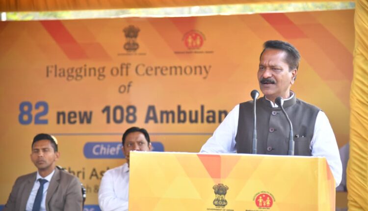 স্বাস্থ্য আৰু পৰিয়াল কল্যাণ জলসিঞ্চন মন্ত্ৰী অশোক সিংহলে-৮২ খন ১০৮ মৃত্যুঞ্জয় এম্বুলেন্স সেৱাৰ ফ্লেগ অফ কৰে