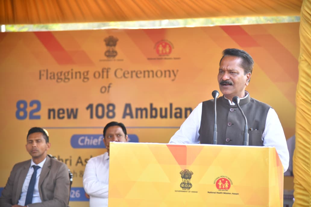 অসম চৰকাৰৰ স্বাস্থ্য আৰু পৰিয়াল কল্যাণ জলসিঞ্চন মন্ত্ৰী অশোক সিংহলে আজি গুৱাহাটী চিকিৎসা মহাবিদ্যালয়ৰ প্ৰেক্ষাগৃহত আয়োজিত এক অনুষ্ঠানত স্বাস্থ্য আৰু পৰিয়াল কল্যাণ বিভাগত নতুনকৈ সংযোজন কৰা ৮২ খন ১০৮ মৃত্যুঞ্জয় এম্বুলেন্স সেৱাৰ ফ্লেগ কৰে।ইয়াৰে ৪০ খন এম্বুলেঞ্চ এডভাঞ্চড লাইফ চাপৰ্ট থকা আৰু ৪২ খন বেছিক লাইফ চাপৰ্ট থকা।