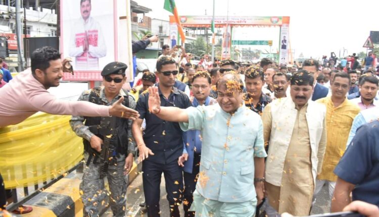 ৰঙিয়াত বিকাশৰ এদিন শীৰ্ষক কাৰ্যসূচী ৰূপায়ণৰ লক্ষ্যৰে আজি উপস্থিত হয় মুখ্য মন্ত্ৰী ডঃ হিমন্ত বিশ্ব শৰ্মা।প্ৰায় ৫ কোটি টকাৰ ব্যয় সাপেক্ষে মুঠ ২৩ টা বিভিন্ন উন্নয়নমূলক কামৰ আধাৰশিলা আৰু শুভাৰম্ভ কৰে মুখ্যমন্ত্ৰীয়ে।অসমৰ ভিতৰতে প্ৰথমটো সংহত মহকুমাধিপতি কাৰ্য্যালয়ৰ আধাৰশিলা স্থাপন কৰাৰ লগতে ৰঙিয়া জিলা ক্ৰীড়া সন্থাৰ খেলপথাৰত অনুষ্ঠিত এখন জনসভাক সম্বোধন কৰে আৰু বিভিন্ন প্ৰকল্পৰ শুভাৰম্ভ কৰে মুখ্যমন্ত্ৰীয়ে।কাৰ্যসূচী উপলক্ষে সমবেত হয় কেবা হাজাৰ লোক।আজি দিনৰ ১০.৪৫ বজাত ৰঙিয়াত উপস্থিত হোৱা মুখ্যমন্ত্ৰী ডঃ হিমন্ত বিশ্ব শৰ্মাই প্ৰথমে ৰাষ্ট্ৰীয় ঘাইপথৰ পৰা ৰঙিয়া চহৰলৈ প্ৰৱেশ কৰা ১৪ কোটি টকাৰে নিৰ্মিত ১.২২৯ দৈৰ্ঘৰ নৱ নিৰ্মিত পথটো মুকলি কৰে।ইয়াৰ পিচতে মুখ্যমন্ত্ৰী গৰাকীয়ে ৰঙিয়াৰ ঐতিহাসিক হৰদত্ত বীৰদত্ত ভৱনত উপস্থিত হৈ প্ৰধানমন্ত্ৰী নৰেন্দ্ৰ মোডীৰ মন-কী-বাত অনুষ্ঠানত অংশ গ্ৰহণ কৰে ।মুখ্যমন্ত্ৰী গৰাকীক সংগ দিয়ে স্থানীয় বিধায়ক তথা বিজেপি দলৰ ৰাজ্যিক সভাপতি ভবেশ কলিতা ,সাংসদ দিলীপ শইকীয়া ,ভুৱনেশ্বৰ কলিতা,পবিত্ৰ মাৰ্ঘেৰিটা,বিধায়ক দিগন্ত কলিতা আৰু সুমণ হৰিপ্ৰিয়াই।