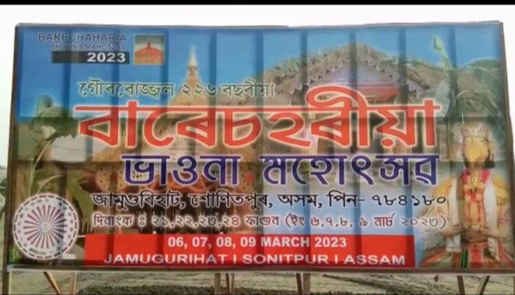 দেশৰ ভিতৰতে একক বৃহৎ সামাজিক,সাংস্কৃতিক অনুষ্ঠান হিচাপে পৰিচিত জামুগুৰিহাটৰ বাৰেচহৰীয়া ভাওনা অহা ৬,৭,৮ আৰু ৯ মাৰ্চত বিস্তৃত কাৰ্যসুচীৰে অনুষ্ঠিত হ’ব ৷জামুগুৰিহাটৰ পকামূৰা পথাৰত আজি পূৱা ভাওনা মহোৎসৱৰ ধৰ্মধ্বজা উত্তোলন কৰে চামধৰা নিৱাসী শতায়ু গৰকা বিশিষ্ট সমাজকৰ্মী কমলা নাথে৷এই উদ্দেশ্যে আজি পূৱা ঐতিহ্যমণ্ডিত কালিয়দমন ক্ষেত্ৰ কোচগাওঁৰ পৰা কেইবা শতাধিক ৰাইজে গায়ন-বায়ন,হৰিনাম,আয়তীৰ উৰুলি,শংঙ্খ,ধ্বনিৰ মাজেৰে সাংস্কৃতিক শোভাযাত্ৰা কৰি পকামুৰা পথাৰলৈ লৈ আনে ধৰ্মধ্বজা ৷১৭৯৭ চনৰ পৰাই নিৰবিচ্ছিন্ন ভাৱে জামুগুৰিয়া ৰাইজে অনুষ্ঠিত কৰি অহা এই ভাওনা এইবেলি ২২৬ বছত ভৰি দিয়ে ৷ অহা ৭ আৰু ৮ মাৰ্চত ২১খন খলাত ৪২ খন ভাওনা অনুষ্ঠিত হব আৰু এই ভাওনা অসমৰ মূখ্যমন্ত্ৰীয়ে শুভ উদ্ধোধন কৰিব ৷ ভাওনা মহোৎসৱৰ কাৰ্যসূচীত দেশৰ গৃহ মন্ত্ৰী অমৃত শ্বাহেও অংশ গ্ৰহণ কৰিব বুলি উদ্যোক্তা সকলে জানিবলৈ দিয়ে ৷ শুভ উদ্ধোধনী অনুষ্ঠানত শোণিতপুৰ জিলা উপায়ুক্ত দেৱ কুমাৰ মিশ্ৰ চতিয়াৰ বিধায়ক তথা উদযাপন সমিতিৰ সভাপতি পদ্ম হাজৰিকাই অংশ গ্ৰহণ কৰে৷