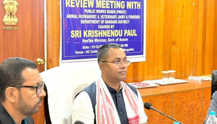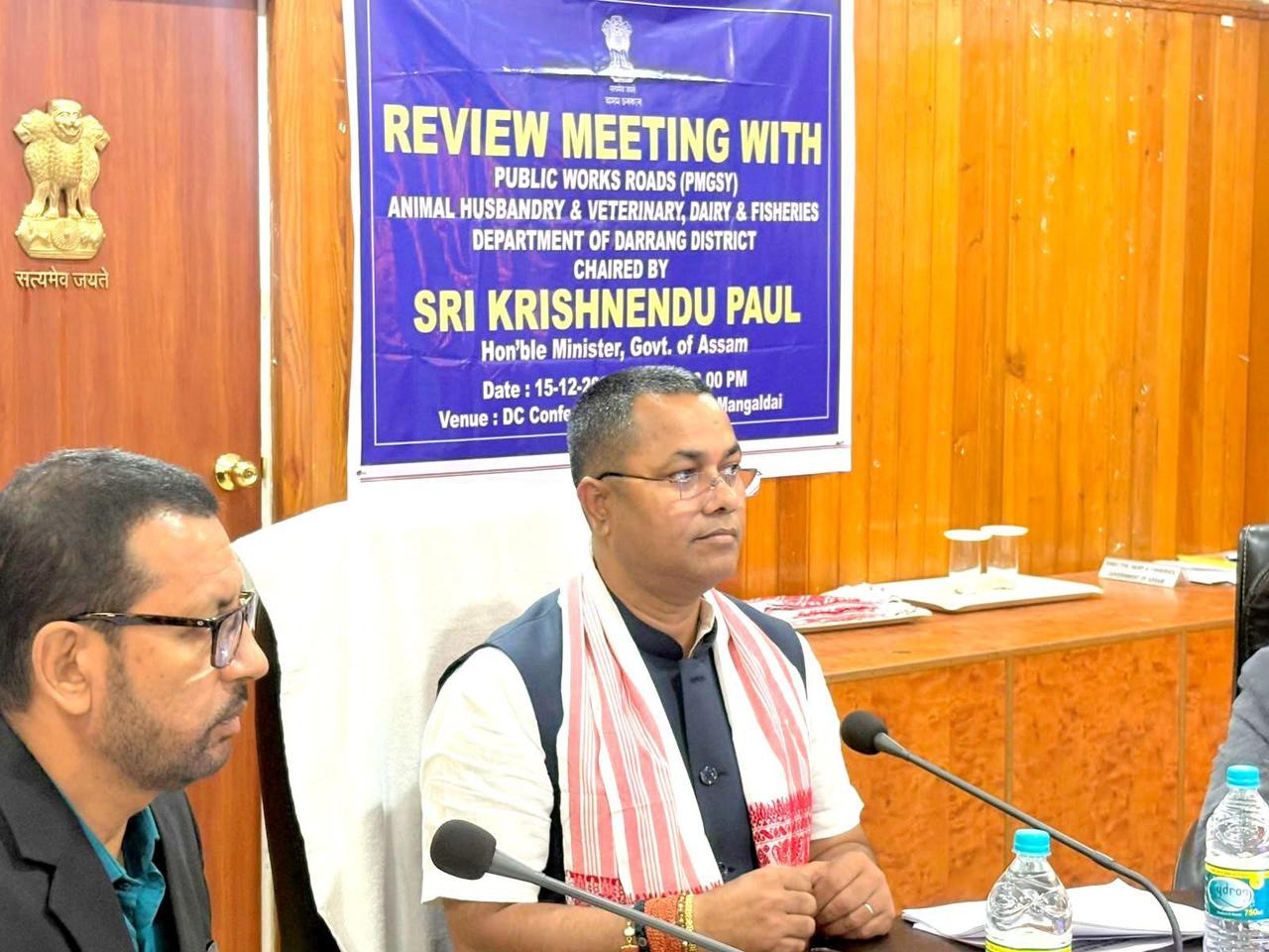 Minister for Animal Husbandry & Veterinary, Fisheries and Public Works Department (Roads), Krishnendu Paul, chaired a comprehensive review meeting at the conference hall of the District Commissioner’s office in Darrang district on Monday to assess the progress of key government schemes and ongoing projects under his departments.