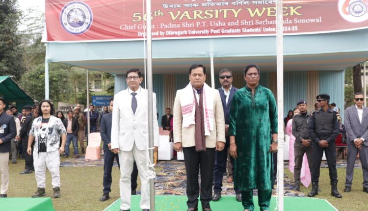 যশস্বী দৌৰবিদ পি টি ঊষাৰ সৈতে ডিব্ৰুগড় বিশ্ববিদ্যালয়ৰ ৫৬তম বিশ্ববিদ্যালয় সপ্তাহৰ শুভাৰম্ভণি কৰে কেন্দ্ৰীয় মন্ত্ৰী সৰ্বানন্দ সোণোৱালে